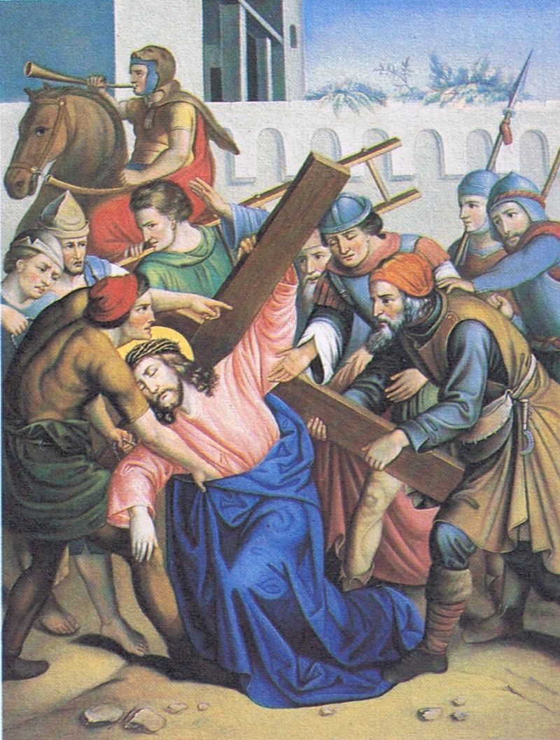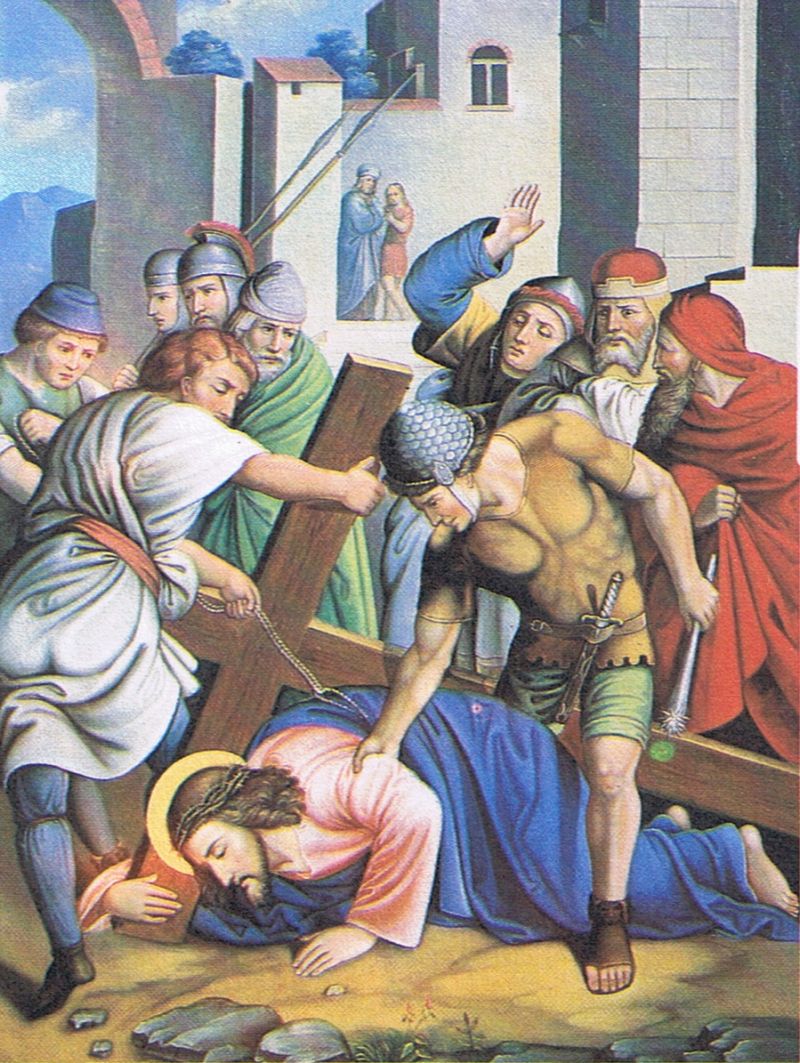 3e Statie: Jezus valt voor de eerste maal onder Zijn kruis