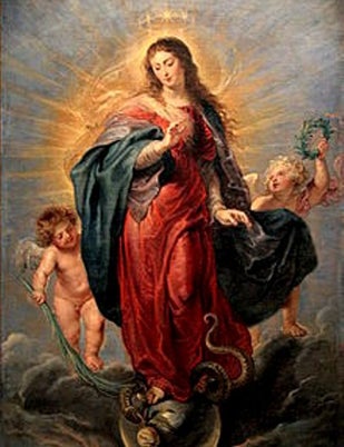 Onze Vader ... 10x Wees gegroet ... + Door Uw Onbevlekte Ontvangenis, O Maria, red ons.